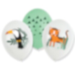 6 st. latexballonger i färgerna vit och grön med söta motiv av safaridjur. Perfekta dekorationer att blåsa upp inför kalaset med safaritema. Ballongerna är ca 27 cm i diameter uppblåsta och blåses upp med luft eller helium.