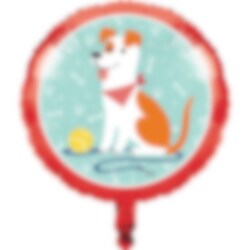 Folieballong i färgerna mintgrön och röd och med motiv av en hund. En perfekt ballong att ha till kalaset med hundtema. Folieballongen blir ca 46 cm i diameter uppblåst och blåses lättast upp med helium.