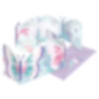 Detta färdiga kalaspaket med söta tillbehör i fjärilstema inkluderar tallrikar (23 cm), pappmuggar (250 ml) och servetter (33 x 33 cm) för 8 eller 16 personer, utöver det så ingår 10 st. rosa ballonger och 10 st. lila ballonger och en ljusblå bordsduk av plast (137 x 274 cm).