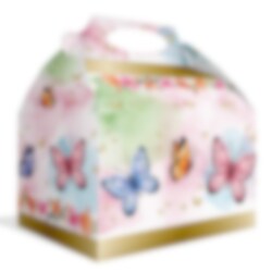 Skapa en magisk kalasupplevelse med denna partybox dekorerad med vackra fjärilar. Fyll den med små presenter och godsaker. Boxen är av papp, enkel att montera och har måtten 20 x 16 cm. Säljs styckvis.