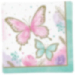 16 st. servetter med riktigt tjusiga fjärilsmotiv. Servetterna har 2-lagers och är 33 x 33 cm när dem är utvikta.