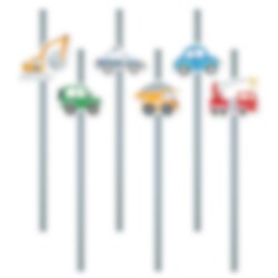 6 st. roliga pappsugrör med färgglada fordon, perfekta till ett kalas med fordonstema. Sugrören är 20 cm långa.