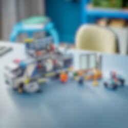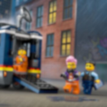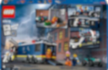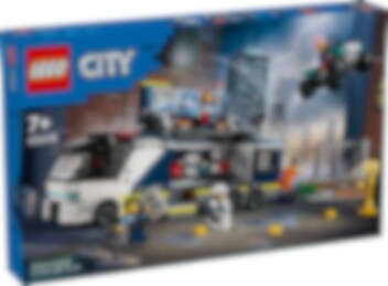 En förrymd fånge och hans medbrottsling är på flykt efter en stor fängelserymning på fängelseön. Följ med utredningsteamet ombord på det mobila brottslabbet. Denna lastbil är full med kriminalteknisk utrustning för att spåra skurkar, däribland skärmar för kameraövervakning, ett mikroskop och ett gammalt troget förstoringsglas! Kan spåret av ledtrådar leda dig till rymmarna? Grymma äventyr väntar med LEGO® City brottspatrullen!