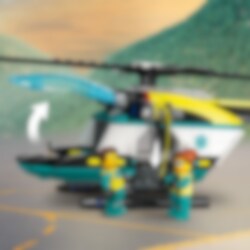 Oj! En ensam vandrare har fått problem uppe i bergen. Det här är ett jobb för räddningshelikoptern. Flyg upp i luften för att få översikt. Titta, en nödraket! Använd vinschen för att fira ner räddningsarbetaren och lyfta upp den skadade vandraren. När han är säkert ombord kan du flyga denna grymma farkost till närmaste sjukhus och återvända till basen för nästa uppdrag. Fantastiskt lagarbete!