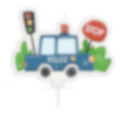 Fint tårtljus som föreställer en polisbil som blir en vacker dekoration på tårtan till kalaset med polistema. Tårtljuset är 8 cm högt.