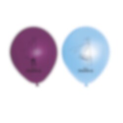 8 st. ballonger i blå och rosa färger med motiv på systrarna Anna och Elsa från Frost 2. Dekorera rummet med dessa när det är dags för ett magiskt kalas med Frosttema. Ballongerna är ca 30 cm i diameter när dem är uppblåsta. Kan blåsas upp med vanlig luft eller helium.