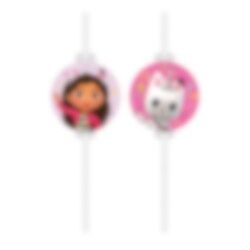 4 st. pappsugrör med charmiga motiv från Gabby's Dollhouse. Sugrören är ca 21 cm långa och motiven är ca 6,5 cm i diameter.