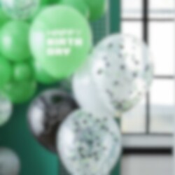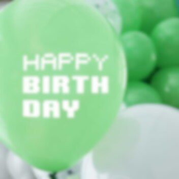 5 st. latexballonger i snygga färger varav en av dem har texten "Happy Birthday", två av dem har motiv av spelkontroller och två av dem är fyllda med färgglatt konfetti. Ballongerna är ca 25 cm i diameter uppblåsta.