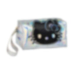 Denna glansiga necessär med Hello Kitty blir ett stilrent och charmigt tillskott i varje väska! Den skimrande silverfärgade ytan tillsammans med Hello Kittys svarta ansikte och glittriga rosett ger ett modernt och lekfullt uttryck. Perfekt för smink, hårsnoddar eller andra småsaker.