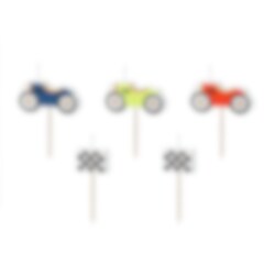 Gör födelsedagstårtan extra speciell med detta 5-pack tårtljus i form av färgglada klassiska racerbilar och målflaggor. Med en storlek på 2 x 3 cm är dessa charmiga tårtljus perfekta för att dekorera tårtor av alla slag.