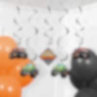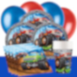 Detta färdiga kalaspaket med coola tillbehör i Monster Truck tema inkluderar tallrikar (23 cm), pappmuggar (266 ml) och servetter (33 x 33 cm) för 8, 16 eller 24 personer. Utöver det så ingår 10 st. röda ballonger och 10 st. mörkblå ballonger och en mörkblå plastduk (137 x 274 cm). I paketet för 24 gäster så ingår 2 st. bordsdukar.
