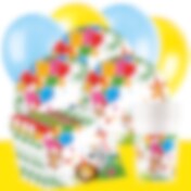 Våra standard kalaspaket innehåller ballonger, tallrikar, muggar och servetter.