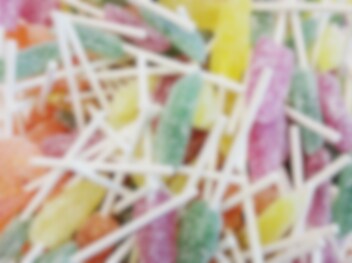 Ingredienser: Socker, glukossirap, syra (citronsyra), aromämne, färgämne (paprikaoleoresin, kurkumin, klorofyller, antocyaner).