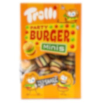 Populära små godishamburgare som passar jättebra till kalaspåsen, partyboxen eller som Pinatafyllnad. Priset avser en styck.
