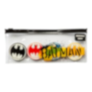 Ge skrivandet en superhjältekänsla med dessa färgstarka Batman-suddgummin. Setet innehåller fyra olika motiv med den klassiska fladdermusloggan i svart, rött, blått och gult. Perfekta i kalaspåsar, som små presenter eller för att samla på för alla Batman-fans.
