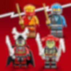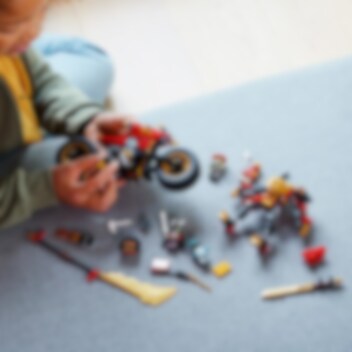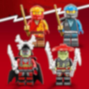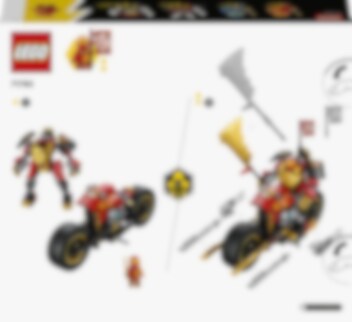 Små byggare från 7 år och fans av coola fordon kan iscensätta egna fantasystrider mellan gott och ont med det actionfyllda leksetet Kais robotförare EVO (71783). Setet innehåller en rörlig robot och en cool motorcykel, som kan uppgraderas till en större modell genom att lägga till gyllene sidopaneler och en stor gyllene klinga. Strider mellan gott och ont Detta byggset innehåller 4 minifigurer: Kai och Nya, båda beväpnade med svärd, benkungen, med sitt eget svärd, och benjägaren, med en benhacka och ett svärd. Barn belönas med en samlarfana för fokus som kan visas upp på ninjamotorcykeln när de lyckas med sin utmaning En rolig digital upplevelse för LEGO byggare Låt appen LEGO Builder guida dig och ditt barn på ett enkelt och intuitivt byggäventyr, där ni kan zooma in och rotera modeller i 3D, spara set och hålla reda på era framsteg.