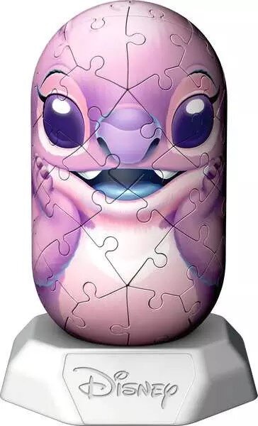 Bygg ihop din egen figur med Ravensburger 3D Pussel - Hylkies Angel 54 bitar. Pusslet föreställer den rosa karaktären Angel från Disneys Stitch i en kapselform. Bitarna är tillverkade av plast och numrerade på baksidan för att underlätta monteringen.