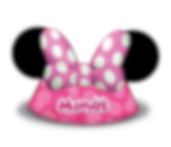6 st. kalashattar med motiv av Mimmis öron och rosett. Dessa är kul att ha med till kalaset med Mimmi Pigg tema. Hattarna är ca 19 cm höga och fästs med ett resårband.