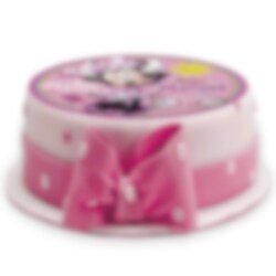 Vacker tårtbild av god sockerfri fondant med söta Mimmi Pigg i centrum. Tårtbilden är färdig att läggas direkt på tårtan och har ett skarpare tryck än vad en oblatbild har. Bilden är ca 15,5 cm i diameter.