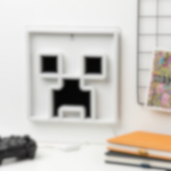 Cool vägglampa i form av en Creeper från Minecraft som lyser i intensivt neongrönt – en perfekt detalj i gamingrummet eller barnrummet!