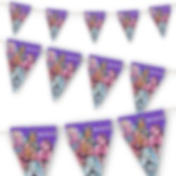 Färgsprakande flaggirlang av papp med coola motiv från Monster High! En perfekt dekoration till kalaset. Girlangen är cirka 3 meter lång och varje vimpel är cirka 24,5 cm hög.