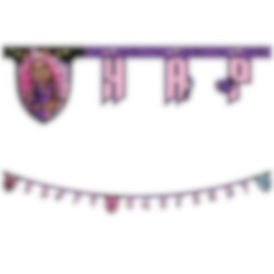 Cool girlang av papp med texten "Happy Birthday" och fräcka motiv från Monster High. Girlangen är 2 meter lång.