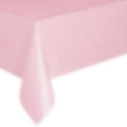 Bordsduk av plast i ljusrosa färg som är 137 x 274 cm stor.