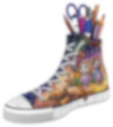 3D pussel med Musse & Helium motiv på en sneaker som färdigbyggt kan användas som pennställ på ditt skrivbord. 3D pusslet är ca 21 x 12 x 8 cm stort. Till detta pussel behövs inget lim utan det är bara att bygga.