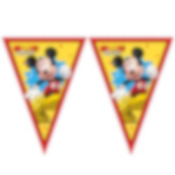 Färgglad flaggirlang av papper med motiv av Musse Pigg. En fin dekoration för att skapa en rolig stämning på kalaset!