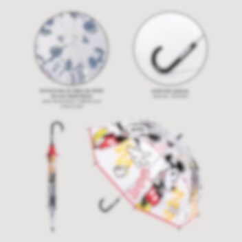 Gör regniga dagar roligare med detta charmiga barnparaply med Musse Pigg! Paraplyet har en diameter på cirka 71 cm och är tillverkat av slitstarkt PoE och glasfiber. Det har 8 pinnar och öppnas manuellt. Den retroinspirerade designen med Musse Pigg gör paraplyet till en favorit bland alla små fans av den klassiska Disney-karaktären.