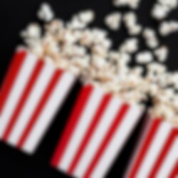 6 st. randiga popcornboxar i rött och vitt. Boxarna är i papp och ca 7 x 7 x 12,5 cm stora.