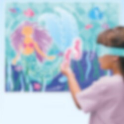 Kul partyspel för 2-16 spelare med sjöjungfrustema. Här ska deltagarna försöka sätta fast en sjöhäst. Den som kommer närmast målet vinner. Förpackningen inkluderar en spelplan av plast (48 x 38 cm), 14 st. klistermärken (numrerade sjöhästar) och en ögonbindel.