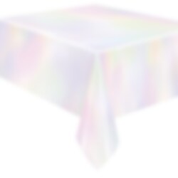 Snygg bordsduk av plast som skimrar i en vacker pärlemor rosa/vit färg. En passande dukningstillbehör till varje kalas, fest eller annan tillställning. Bordsduken är ca 1.27 x 2.13 meter stor. Notera att bordsduken är genomskinlig.