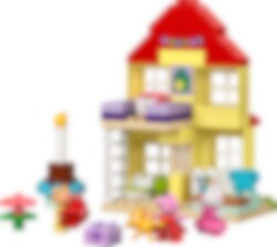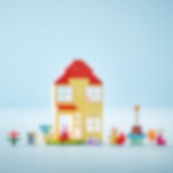 Överraska fans av Greta Gris med en kalasinbjudan! Leksetet Greta Gris – Födelsedagshus (10433) låter flickor, pojkar och förskolebarn från 2 år delta i firandet med Greta och hennes vänner. Denna leksak med Greta Gris har massor av funktioner somsmå barn kommer att känna igen från tv-serien. Den innehåller figurer av Greta, Pelle Ponny och Lena Lamm och av Gretas nalle. Inne i det ikoniska huset finns ett sovrum som nås med en stege och ett kök där små barn kan leka att de bakar en födelsedags tårta. Det finns även ett badrum med ett handfat där vuxna kan förklara vikten av att tvätta händerna, särskilt innan man äter tårta! LEGO® DUPLO® Greta Gris ombyggbara leksaker är utformade för att främja en rad olika färdigheter hos förskolebarn. Små barn utvecklar logiskt tänkande när de imiterar verkligheten och iscensätter olika kalasrutiner, som att välkomna vänner, utbyta presenter och skära upp tårtan. De utvecklar även självuttryck när de föreställer sig hur det är att vara med på ett sådant härligt firande.