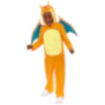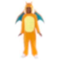 - Innehåller: Orange jumpsuit med tillhörande huva som föreställer Charizards ansikte och avtagbara vingar på ryggen.