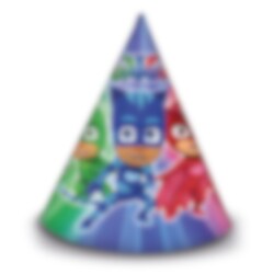 6 st. fina kalashattar med roligt motiv. Lägg fram dessa på kalasbordet när det är dags att sjunga för födelsedagsbarnet. Hattarna är ca 19 cm höga och sätts på plats med ett resårband.