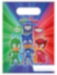 6 st. kalaspåsar med fint motiv av Owlette, Catboy och Gecko från Pyjamashjältarna. Fyll påsarna med gott godis och någon leksak och ge dem sedan till gästerna under kalasets gång.