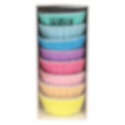 100 st. muffinsformar i pastellfärger. Du får en mix av färgerna rosa, lila, mint, blå, grön, gul, orange och röd. Muffinsformarna har en folierad insida. Ett tips är att använda muffinsformarna med en muffinsplåt vid gräddning. Formarna är 5 cm i botten och är 2,8 cm höga.