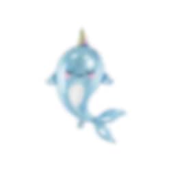 Folieballong i form av en blå skimrande narval. En gullig dekoration att ha med till kalaset. Ballongen blir ca 53 x 87 cm stor uppblåst och blåses upp med luft eller helium.