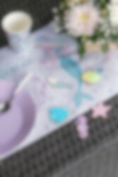 Skapa en magisk dukning på ditt sjöjungfrukalas med denna bordslöpare som har motiv av stora och små sjöjungfruar och andra havsrelaterade saker. Matchar jättefint med våra andra tillbehör i samma sjöjungfrutema så som tallrik, mugg och servett. Bordslöparen är i materialet polyester och är ca 30 cm bred och 5 meter lång.