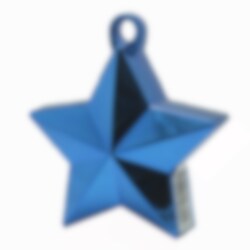 Stjärnformad stilig ballongvikt i blå metallicfärg för att hålla dina ballonger upplåsta med helium kvar på jorden. Ballongvikten väger ca 170 gram och har en kapacitet på ca 30 st. latexballonger eller 8-10 st. siffer- eller bokstavsballonger.