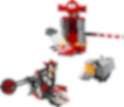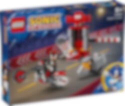 Hjälp Shadow att bryta sig ut ur sin staskammare i labbet och fly! Kör motorcykeln genom barrikaden innan den slår igen. Se upp – en Badnik, RhinoBot, är alldeles bakom dig! Kämpa mot RhinoBot och se till att den förstörs, och använd sedan extra fart för att fly. Åh titta ... Clucky lyckades också fly. Nu väntar fler äventyr och roliga lekar!