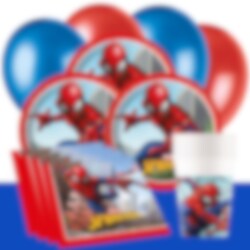 Detta färdiga kalaspaket med Spiderman originaltillbehör inkluderar tallrikar (23 cm), pappmuggar (200 ml) och servetter (33 x 33 cm) för 8, 16 eller 24 personer. Utöver det så ingår 10 st. röda ballonger och 10 st. mörkblå ballonger och en mörkblå bordsduk av plast (137 x 274 cm). I paketet för 24 gäster så ingår 2 st. bordsdukar.