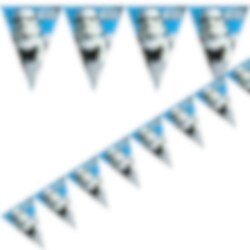 Snygg flaggirlang i tema Star Wars Classic. Girlangen är i plast och har tufft motiv av StormTrooper. Häng upp den i taket eller på väggen i födelsedagsbarnets rum. Girlangen är ca 2,3 m lång och består av vimplar som är ca 17 x 24 cm stora. Den har motiv på en sida.