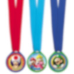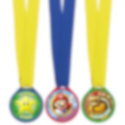 12 st. medaljer i olika färger och med motiv av de söta karaktärerna från Super Mario Bros. Passar bra som pris på kalasets tävlingar eller som present i barnens kalaspåsar. Medaljerna är ca 4 cm i diameter.