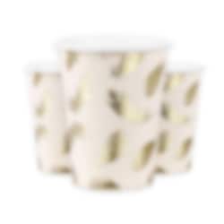 6 st. pappmuggar som har motiv av guldfolierade fjädrar från en svan. Väldigt fina tillbehör att ha med i dukningen inför dopet eller babyshowern. Muggarna är ca 9 cm höga och rymmer ca 220 ml.