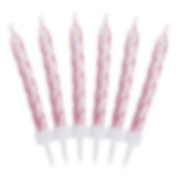 12 st. snygga tårtljus med skruvar i en fin rosa färg. Använd dessa för att skapa en wow faktor på din tårta till kalaset. Ljusen är ca 6,5 cm exklusive hållarna.