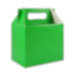 Grön partybox med handtag som enkelt viks ihop. Perfekt att lägga godis och överraskningar i till kalaset eller festen. Boxen är gjord av kartong och den är ca 15 cm lång, 10 cm bred och 12 cm hög. Partyboxarna säljs styckvis.