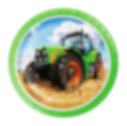 8 st. pappassietter med roligt motiv av en traktor. Assietterna är ca 18 cm i diameter.