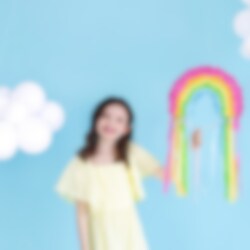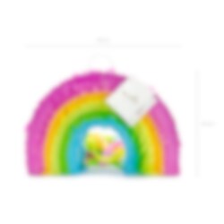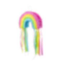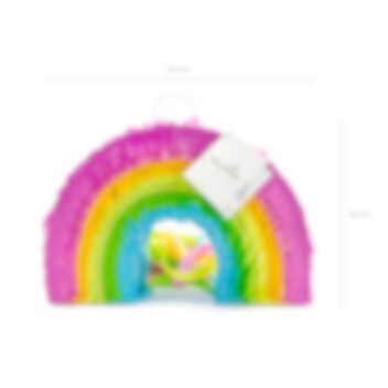 Vacker pinata föreställande en färgsprakande regnbåge. En kul grej som du kan ha med till kalaset som en leksak eller som en bordsdekoration. Fyll pinatan med godis och leksaker och låt sedan barnen dra snörena för att se vem det är som tömmer den. Pinatan är ca 30 x 20 x 10 cm stor och säljs tom.